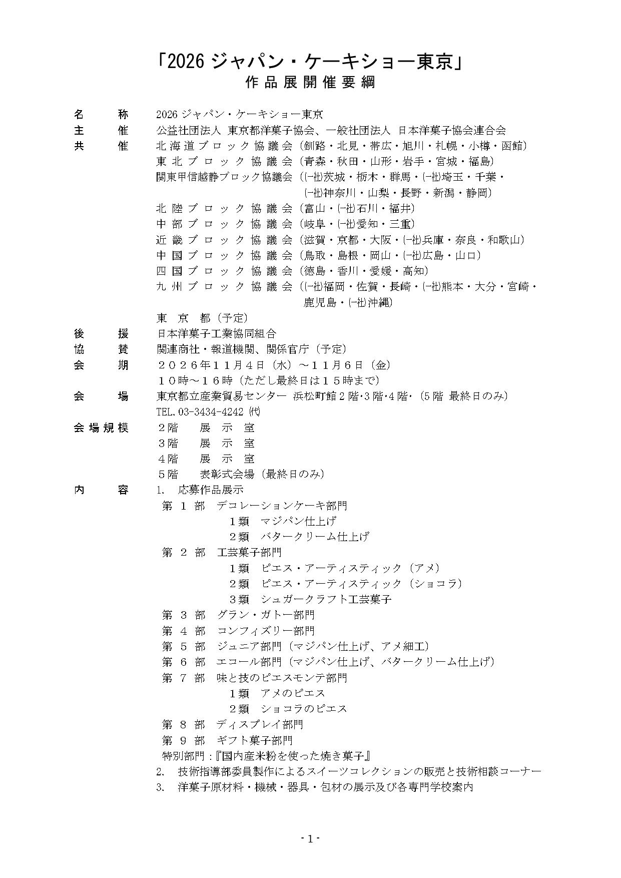 2026ジャパン・ケーキショー東京 開催要綱2026年4月22日