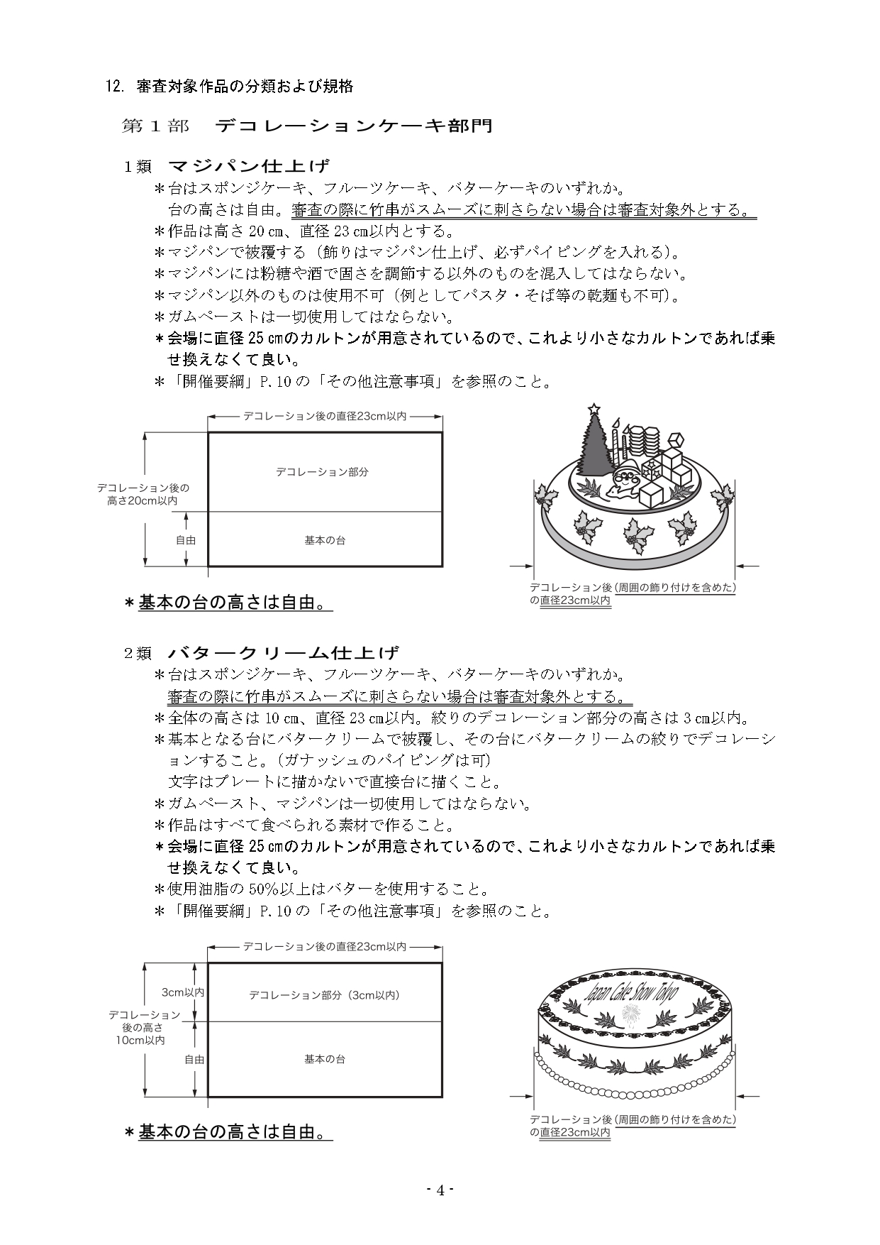 その他、第1部 デコレーションケーキ部門にも 1類マジパン仕上げ と 2類バタークリーム仕上げ がございますのでご注意下さい。