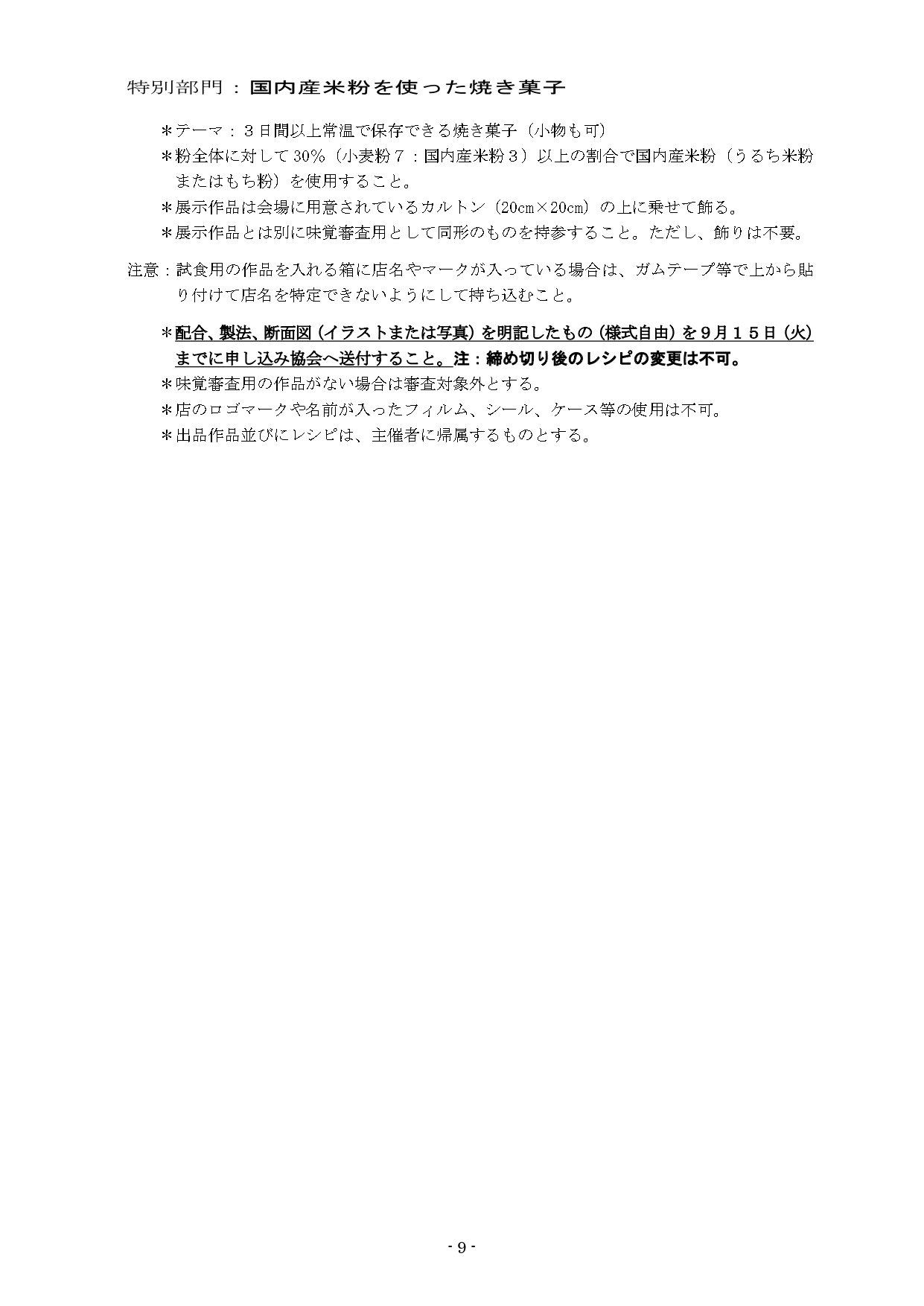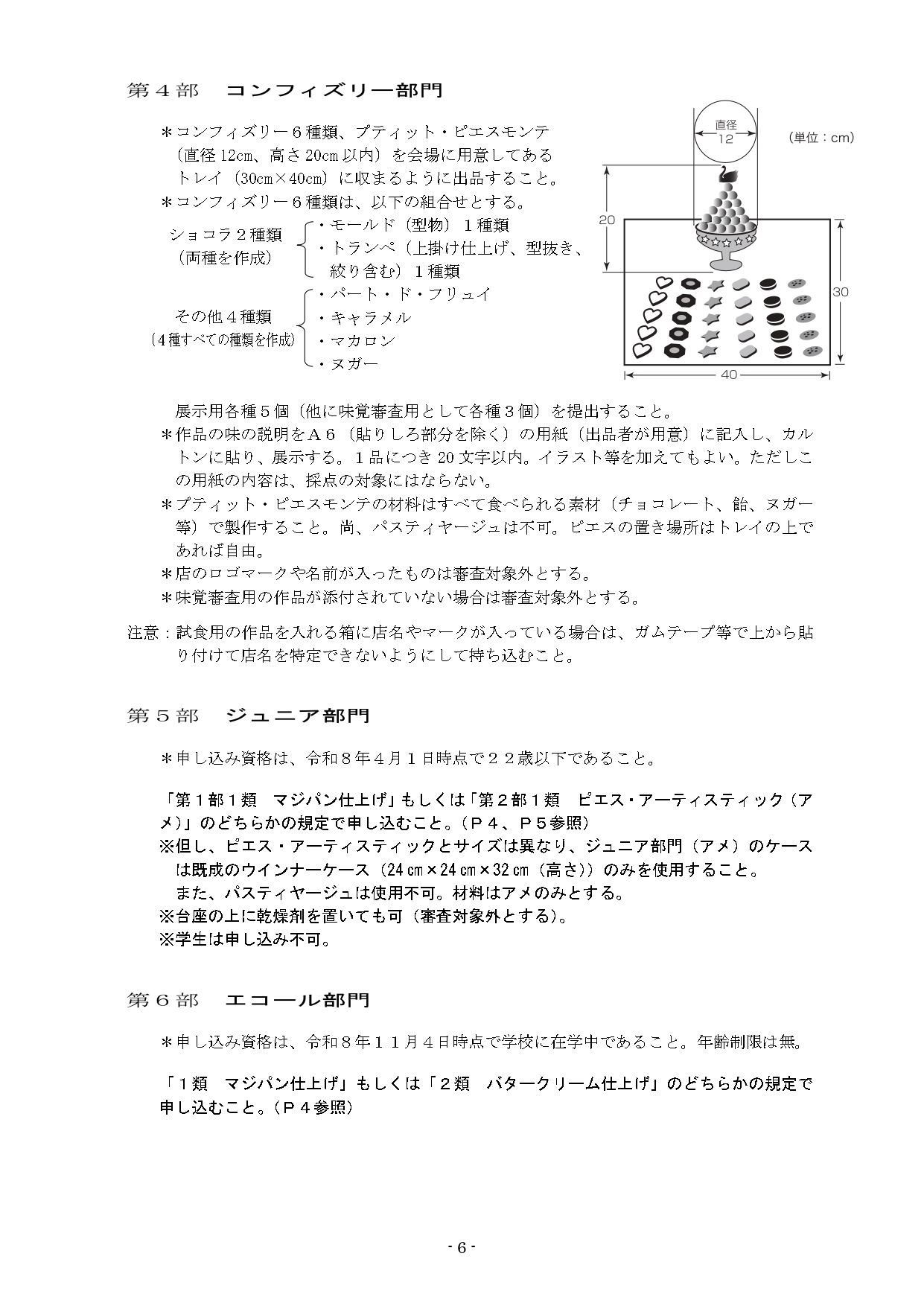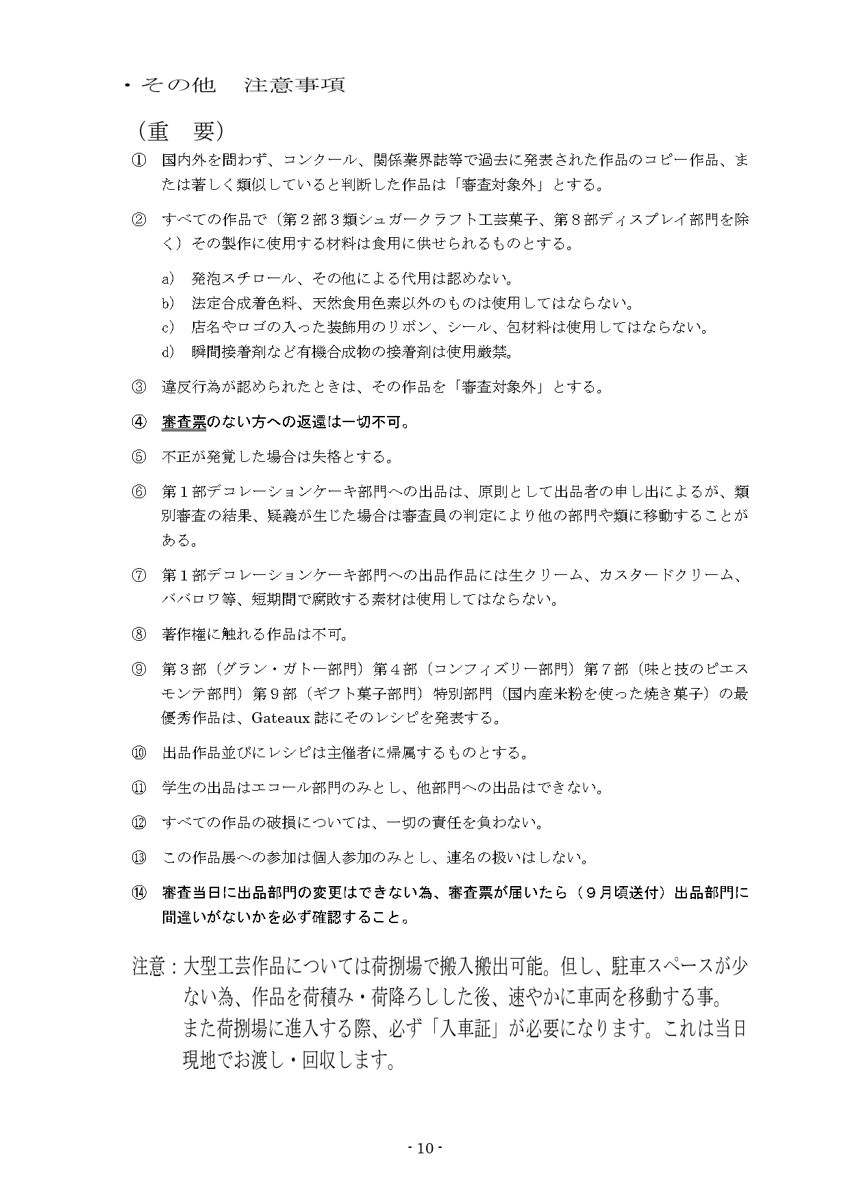 ・ギフト菓子部門: 高さ制限25㎝となりました。審査分配は味とクオリティが100%となりました。